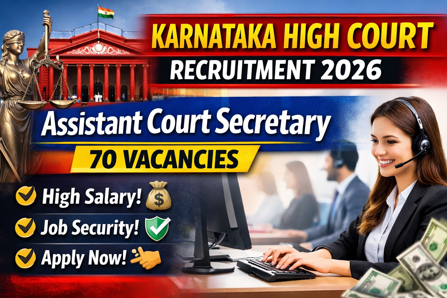 ಕರ್ನಾಟಕದಲ್ಲಿ ಸರ್ಕಾರಿ ಉದ್ಯೋಗಕ್ಕಾಗಿ ಬಹಳ ದಿನಗಳಿಂದ ಕಾಯುತ್ತಿರುವ ಅಭ್ಯರ್ಥಿಗಳಿಗೆ ಈಗ ಅತ್ಯಂತ ಮಹತ್ವದ ಮತ್ತು ಅಪರೂಪದ ಅವಕಾಶ ಲಭ್ಯವಾಗಿದೆ. ಕರ್ನಾಟಕ ಉಚ್ಚ ನ್ಯಾಯಾಲಯವು (Karnataka High Court) 2026ನೇ ಸಾಲಿನ ನೇಮಕಾತಿ ಅಧಿಸೂಚನೆಯನ್ನು ಅಧಿಕೃತವಾಗಿ ಪ್ರಕಟಿಸಿದ್ದು, ಅಸಿಸ್ಟೆಂಟ್ ಕೋರ್ಟ್ ಸೆಕ್ರೆಟರಿ ಹುದ್ದೆಗಳಿಗೆ ಅರ್ಹ ಅಭ್ಯರ್ಥಿಗಳಿಂದ ಆನ್‌ಲೈನ್ ಮೂಲಕ ಅರ್ಜಿಗಳನ್ನು ಆಹ್ವಾನಿಸಿದೆ. ನ್ಯಾಯಾಂಗ ಇಲಾಖೆಯಲ್ಲಿ ಕೆಲಸ ಮಾಡುವ ಆಸೆ ಹೊಂದಿರುವವರಿಗೆ ಇದು ಒಂದು ಸುವರ್ಣಾವಕಾಶವಾಗಿದ್ದು, ಸ್ಪರ್ಧಾತ್ಮಕ ಪರೀಕ್ಷೆಗಳ ಮೂಲಕ ತಮ್ಮ ಪ್ರತಿಭೆಯನ್ನು ತೋರಿಸಲು ಉತ್ತಮ ವೇದಿಕೆಯಾಗಿದೆ.