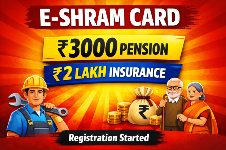 NEW PENSION SCHEME:ಇ-ಶ್ರಮ್ ಕಾರ್ಡ್ ಹೊಸ ಪಿಂಚಣಿ ಯೋಜನೆ 2026, ₹3000 ಪಿಂಚಣಿ ಮತ್ತು ₹2 ಲಕ್ಷ ಅಪಘಾತ ವಿಮೆ – ಸಂಪೂರ್ಣ ಮಾಹಿತಿ ಭಾರತ ಸರ್ಕಾರವು …