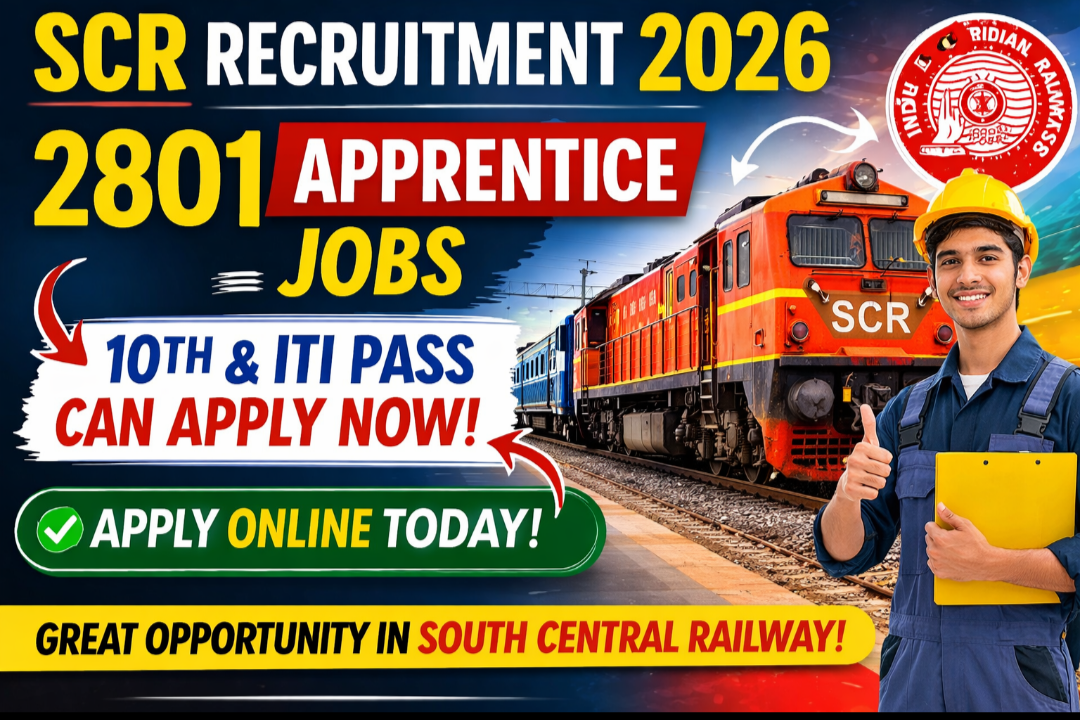 SCR Recruitment 2026: ದಕ್ಷಿಣ ಮಧ್ಯ ರೈಲ್ವೆಯಲ್ಲಿ 2801 ಅಪ್ರೆಂಟಿಸ್ ಹುದ್ದೆಗಳು – 10ನೇ ತರಗತಿ ಪಾಸ್ ಆದವರಿಗೆ ದೊಡ್ಡ ಅವಕಾಶ! ಈಗಲೇ ಆನ್‌ಲೈನ್ ಅರ್ಜಿ ಹಾಕಿ